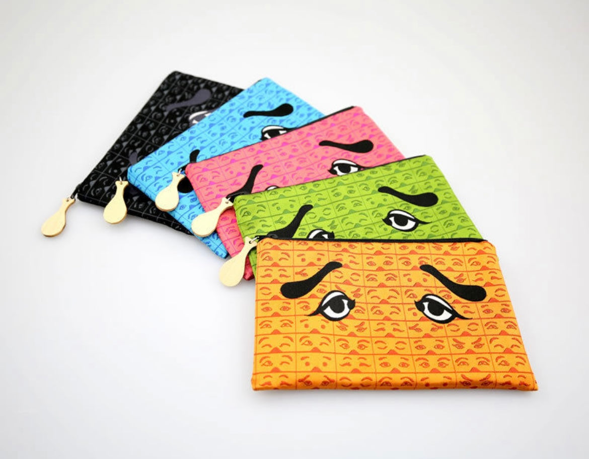 福岡の人ならお馴染みのにわか面の様々な表情を地模様にあしらい、ファスナースライダーには木製のしゃもじをチャームにするなどして、博多らしさをあらわしています。
